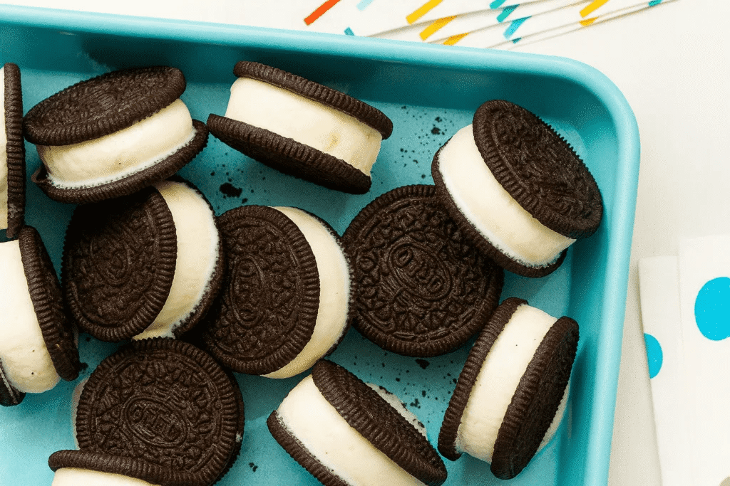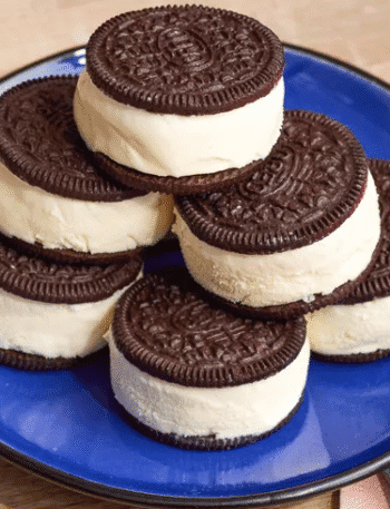 Two ingredient ice cream sandwiches are tiny frozen treats made from two simple things you can grab at almost any grocery store: sandwich cookies and a pint of ice cream. You shape the ice cream into a neat log, slice it into discs, and tuck each disc between two cookie halves for adorable mini sandwiches. They are fast to assemble, fun for both kids and adults, and perfect when you want a small sweet bite instead of a huge dessert.