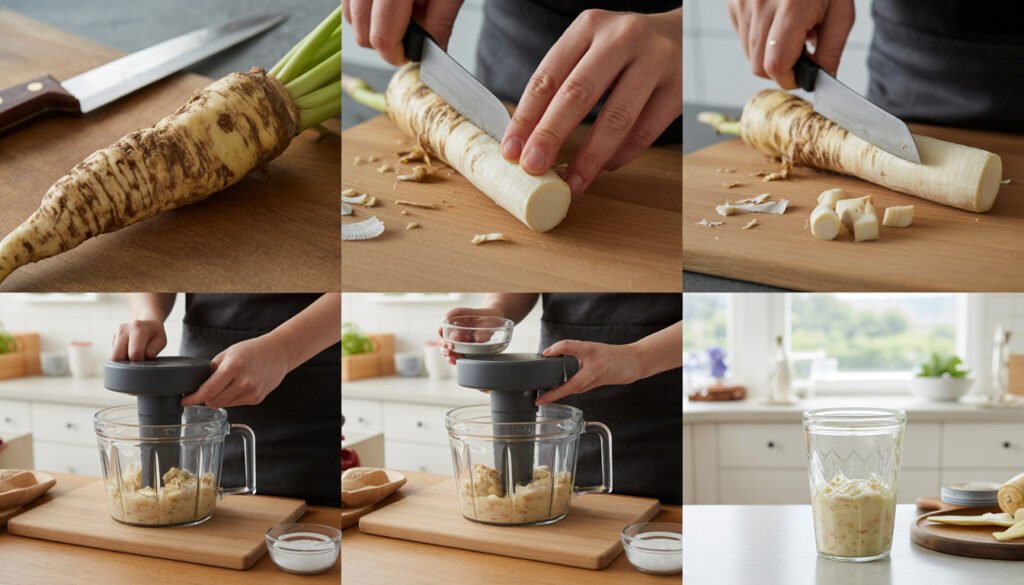 Prepared horseradish is the nose-tingling condiment that upgrades roast beef, smoked fish, Bloody Marys, and cocktail sauce. Making it at home takes about 10 minutes, costs less than store-bought, and crucially lets you control the heat. When the root is chopped, myrosinase converts glucosinolates to allyl isothiocyanate (the “heat”). Adding acid (vinegar) halts that reaction, “setting” your preferred intensity.