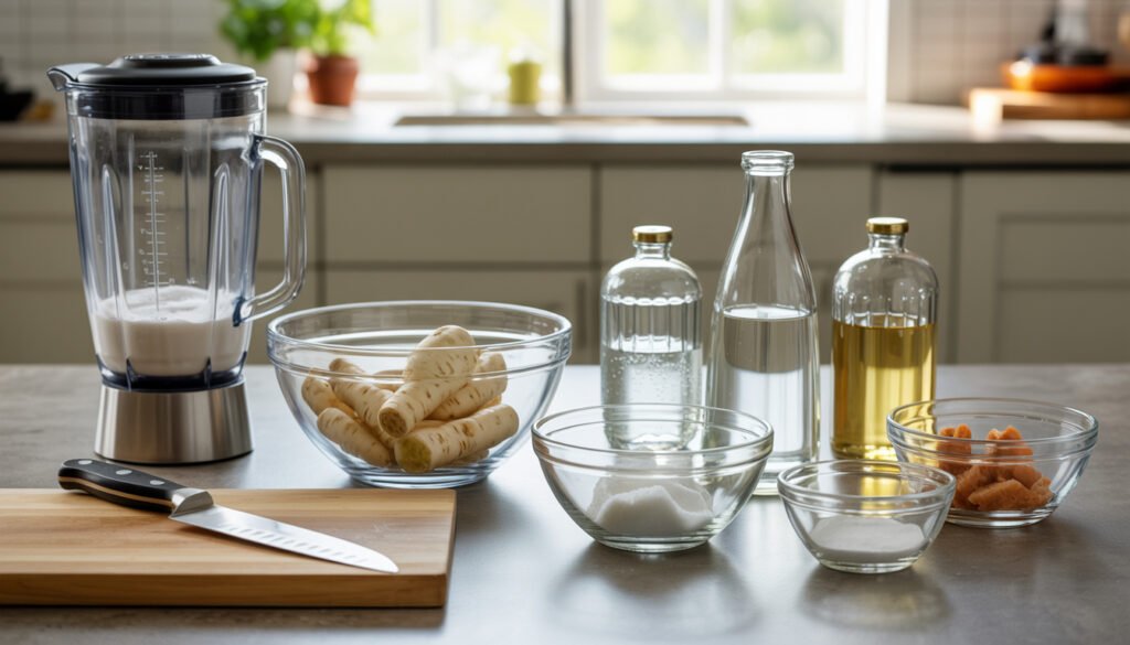 - 8 – 10 oz (225 – 280 g) fresh horseradish root, peeled and chopped