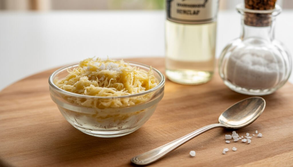 - Acidify & season: Add vinegar, salt, sugar (optional). Pulse just to a loose, spoonable paste.